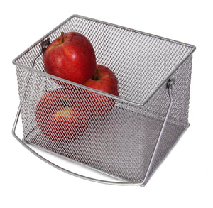 These attractive storage mesh bins are designed for home organization in your kitchen, bathroom, laundry room, bedroom, garage, and basement. In the kitchen you can store everything from snacks, cereals, canned goods, soda pop cans, juice boxes, granola bars to cooking items, utensils, silverware, cleaning products, craft and arts supplies and more.